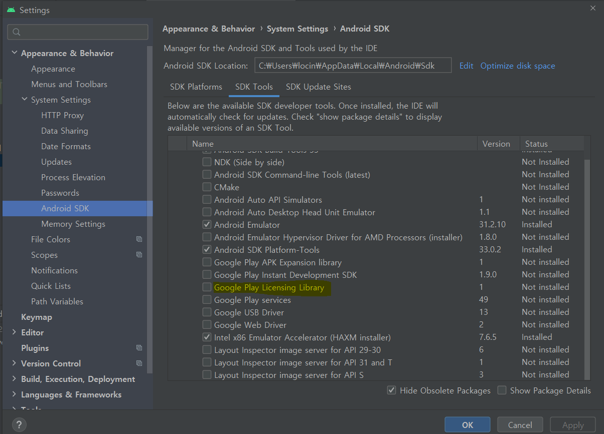 알고 보니 SDK 라이센스 문제로 간단하게 해결 할 수 있었다.