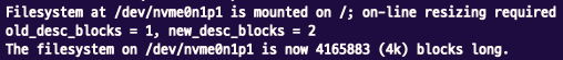 여기에서 root 인 nvme0n1p1의 용량이 확장되어야하지만 아직 7.9GB 상태이고 이것을 확장 시켜줄것